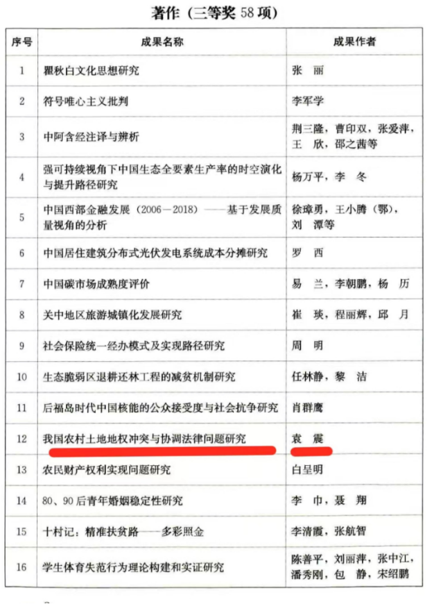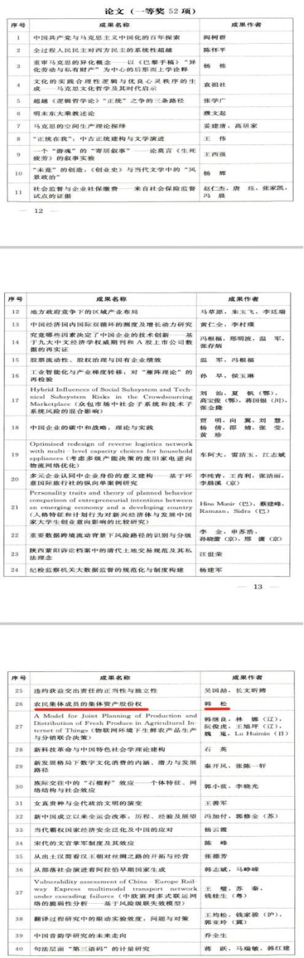 根据刚刚发布的《陕西省人民政府关于表彰第十六次哲学社会科学优秀成果的通报》文件,我院韩松教授论文《农民集体成员的集体资产股份权》获论文类一等奖、袁震教授著作《我国农村土地地权冲突与协调法律问题研究》获著作类三等奖。